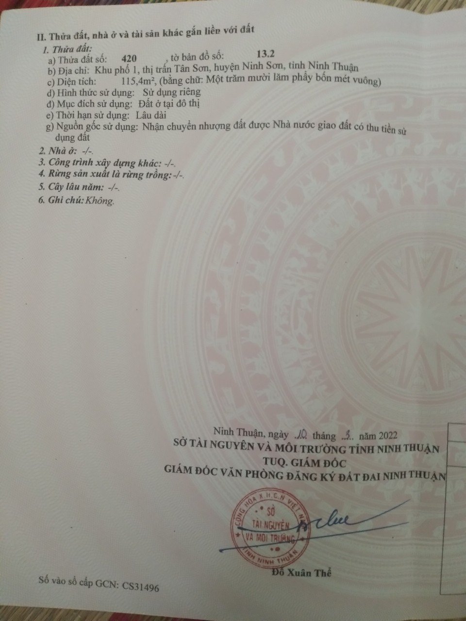 Địa chỉ: Khu phố 1, đường Phan Thanh Giản, TT Tân Sơn, huyện Ninh Sơn, tỉnh Ninh Thuận