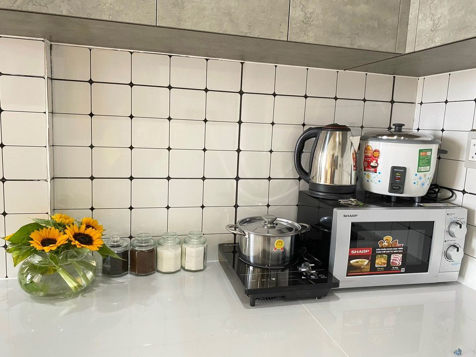 + Căn hộ full nội thất: Tủ lạnh, máy giặt, máy lạnh, quạt, máy nước nóng, bếp từ, lò vi sóng,