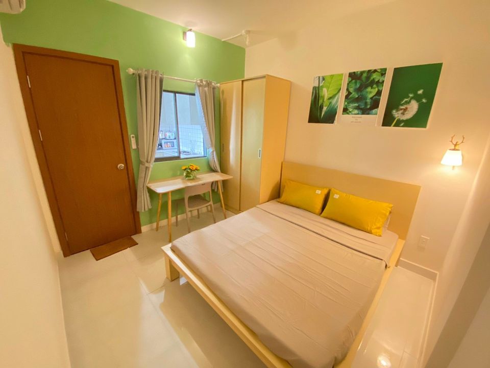 + Các phòng ngủ đều có: giường, nệm, drap, tủ quần áo, bàn, ghế và máy lạnh.